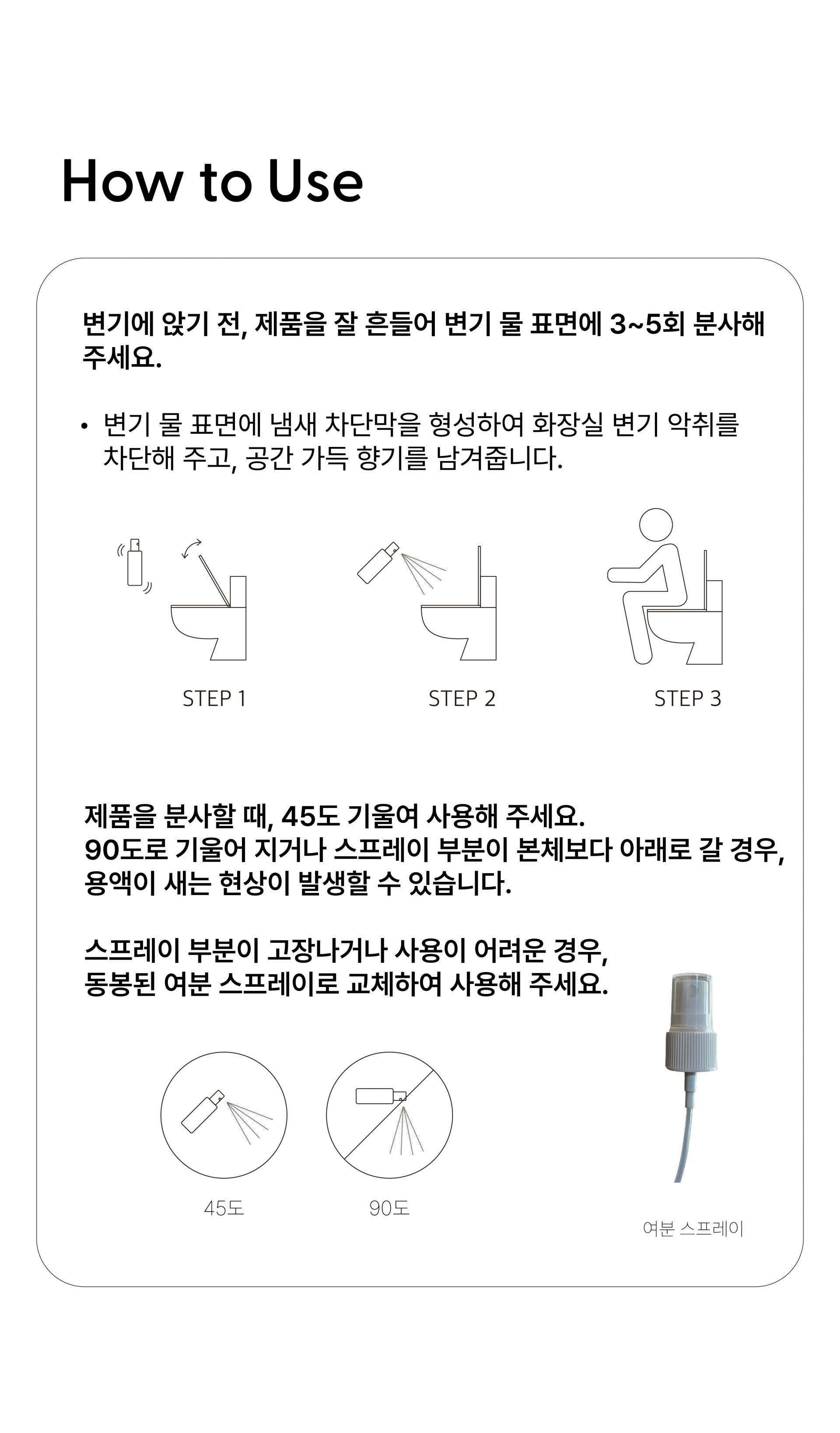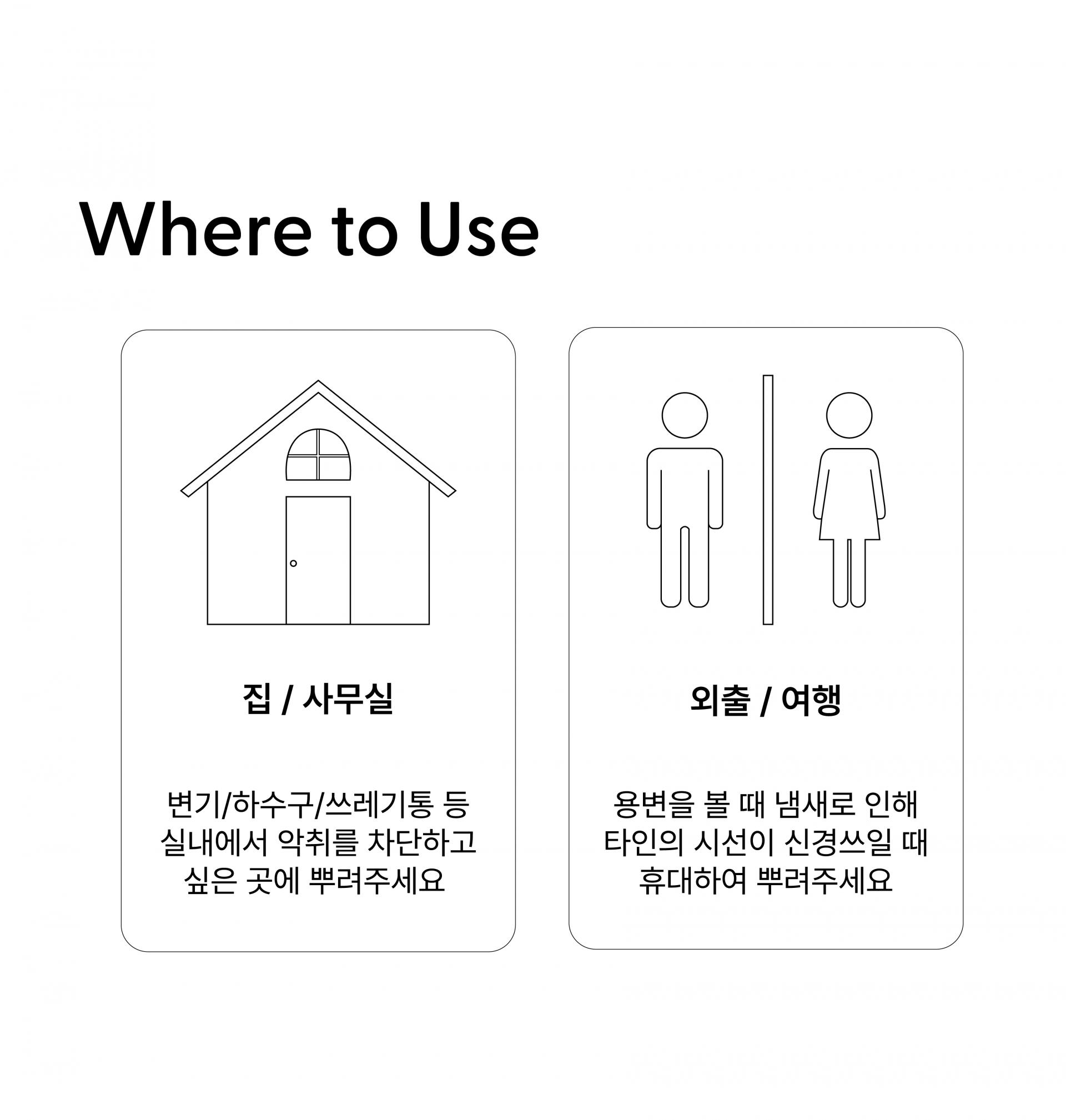 용도: 일반용(실내공간용, 섬유용, 가죽용, 실내용, 물체용), 자동차용(실내용) / 제형: 분사형-분무기형